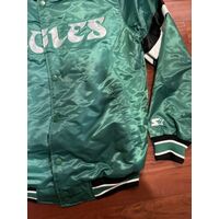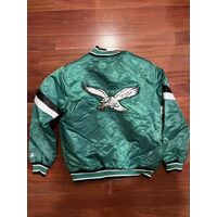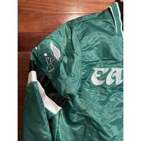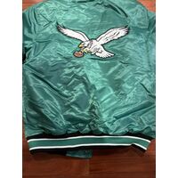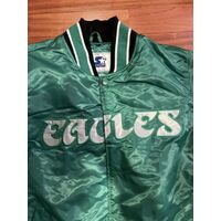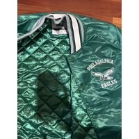 Philadelphia Eagles Starter Satin Bomber Varsity Jacket Black Kelly Green S-3XL