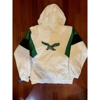 PHILADELPHIA EAGLES NFL HOODED PULLOVER STARTER WHITE GREEN JACKET SIZE S-XL