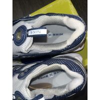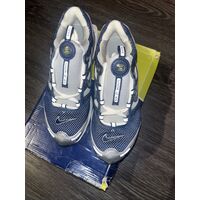 VINTAGE YOUTH 5.5 NIKE SHOX ALL LEATHER TENNIS SHOES NAVY WHITE