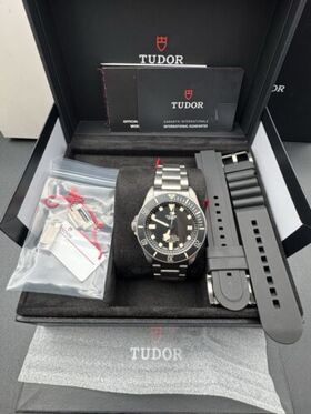 Tudor box, Booklets, extra rubber straps, white tag, and warranty card (dated in July, 2024!)