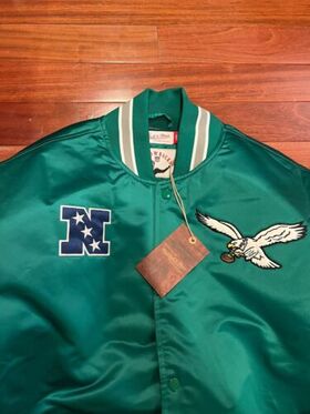 Mitchell & Ness Lightweight Kelly Green Satin Jacket Philadelphia Eagles S-3XL