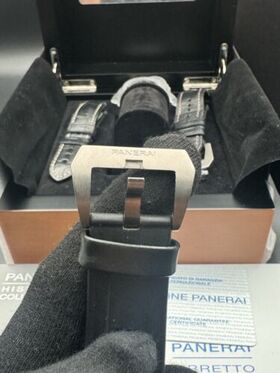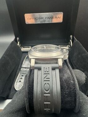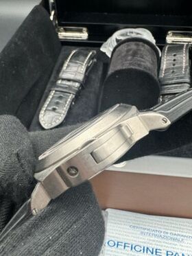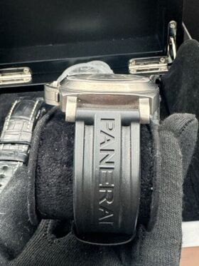 This timepiece is in great condition! The movement has timed and tested and is keeping excellent, accurate time. The case and bezel are in great shape. It will come with the original Panerai black leather strap and rubber strap! Both are in good shape. This watch will come as a complete set, Panerai travel vase, booklet, warranty card, will all be included!